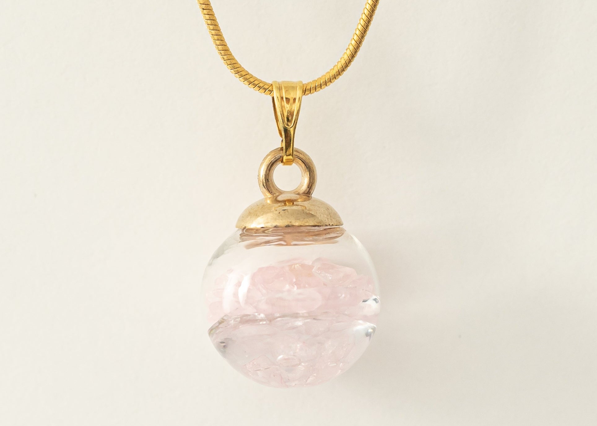 Perle Rosenquarz, gold, handmade