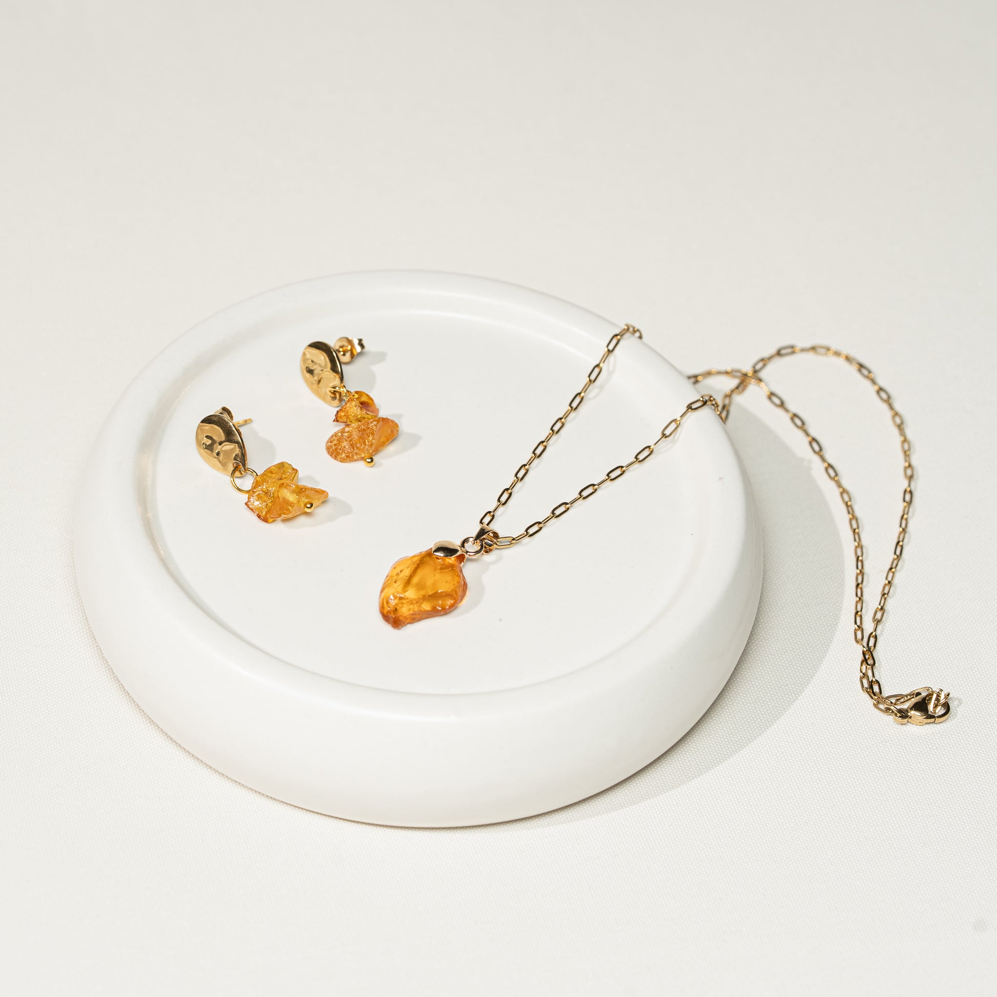 Diese eleganten Ohrringe aus hochwertigem Edelstahl setzen echten Bernstein stilvoll in Szene. Die warmen, honigfarbenen Töne des Natursteins harmonieren perfekt mit dem kühlen Glanz des Edelstahls und schaffen einen edlen, gleichzeitig natürlichen Look. Ob im Alltag oder zu besonderen Anlässen – diese Ohrringe verleihen deinem Outfit einen dezenten, aber wirkungsvollen Akzent.
