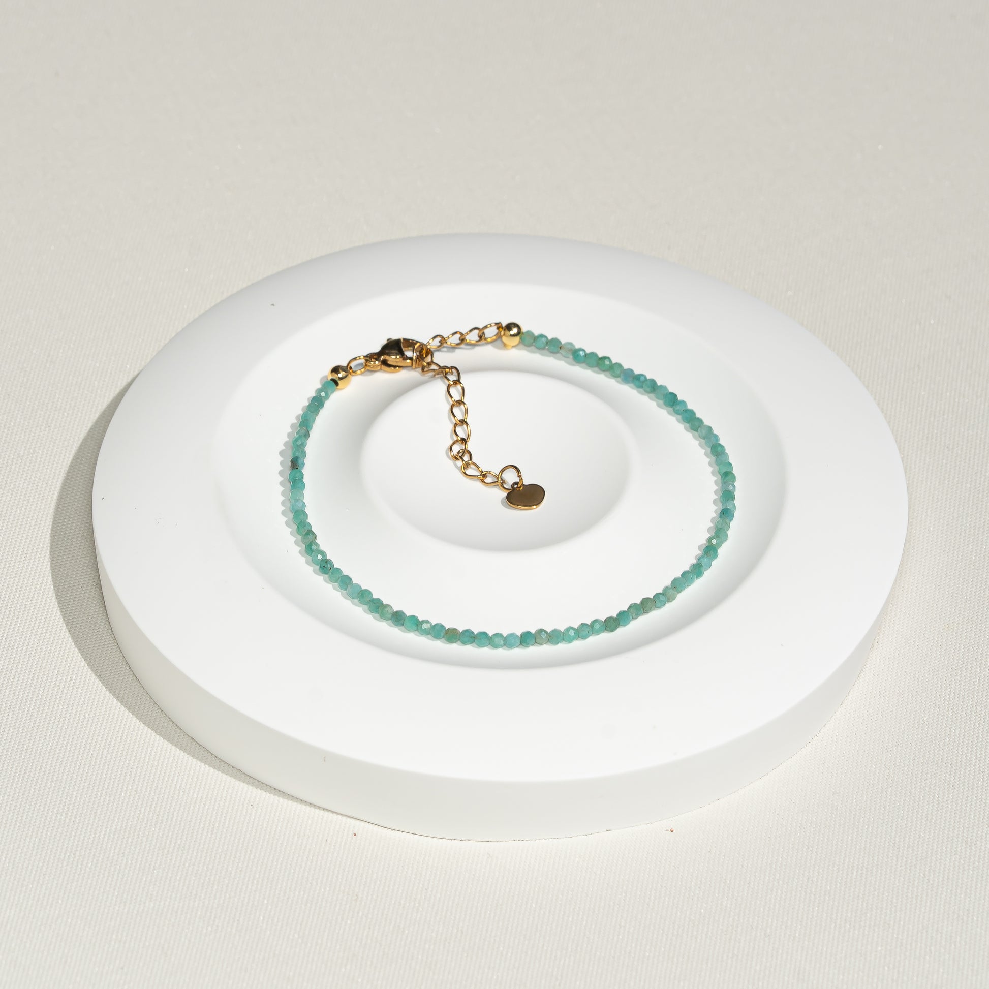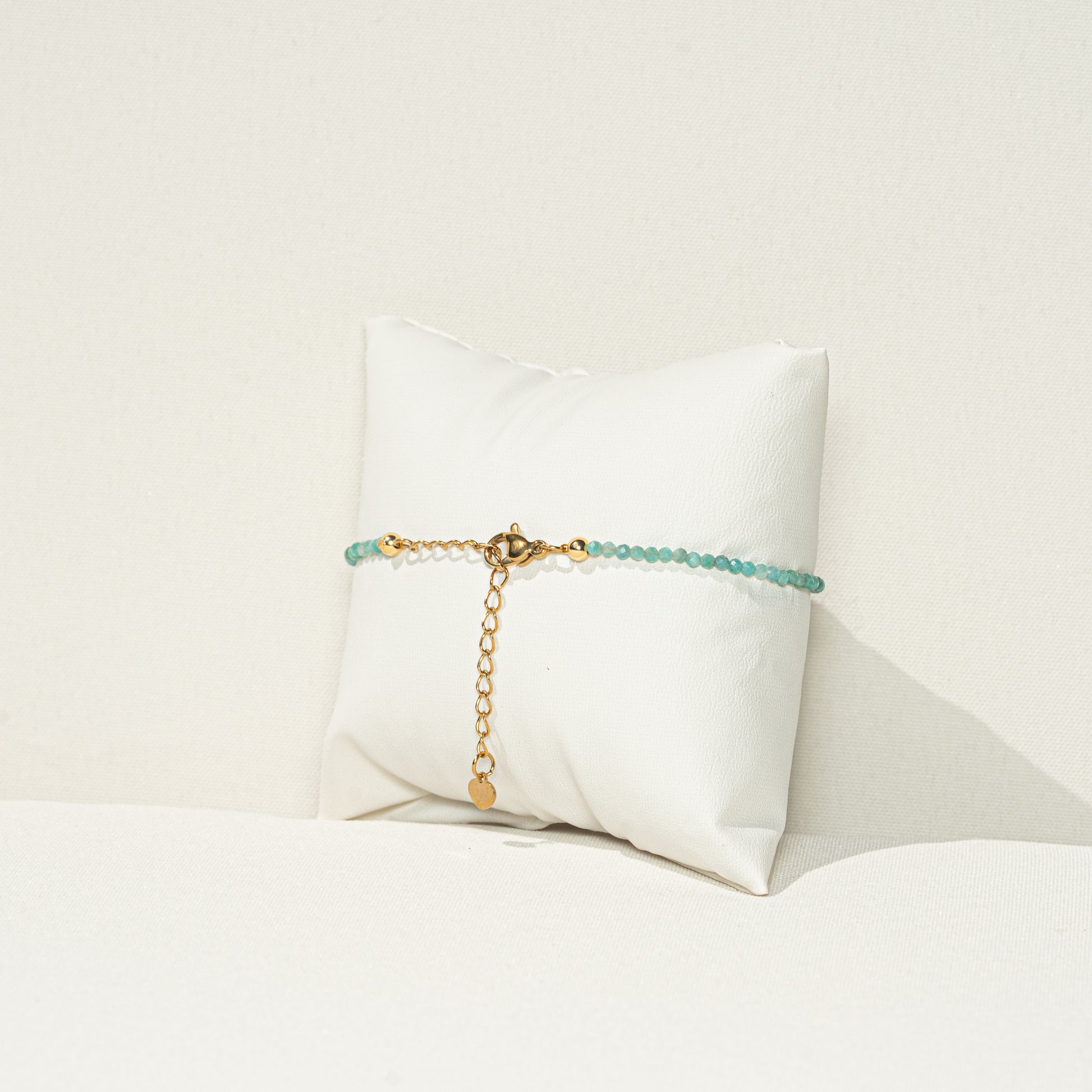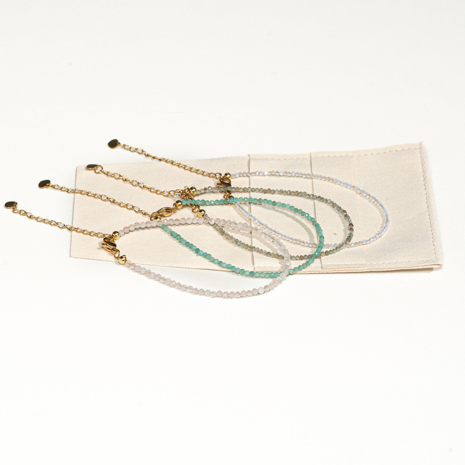 Armband aus facettierten kleinen Edelsteinen mit einem längenverstellbaren Edlelstahlverschluss in schöner Schmuckbox.