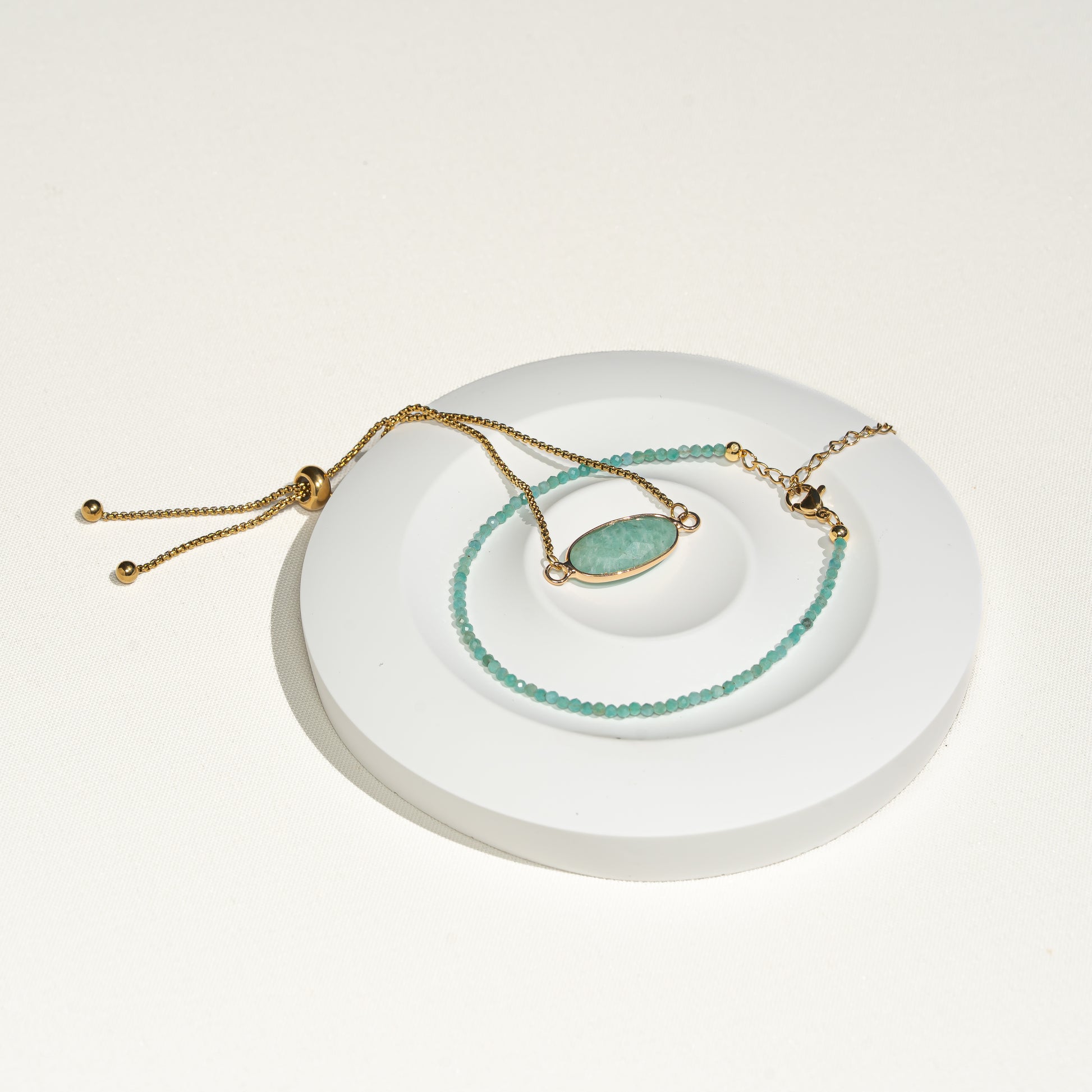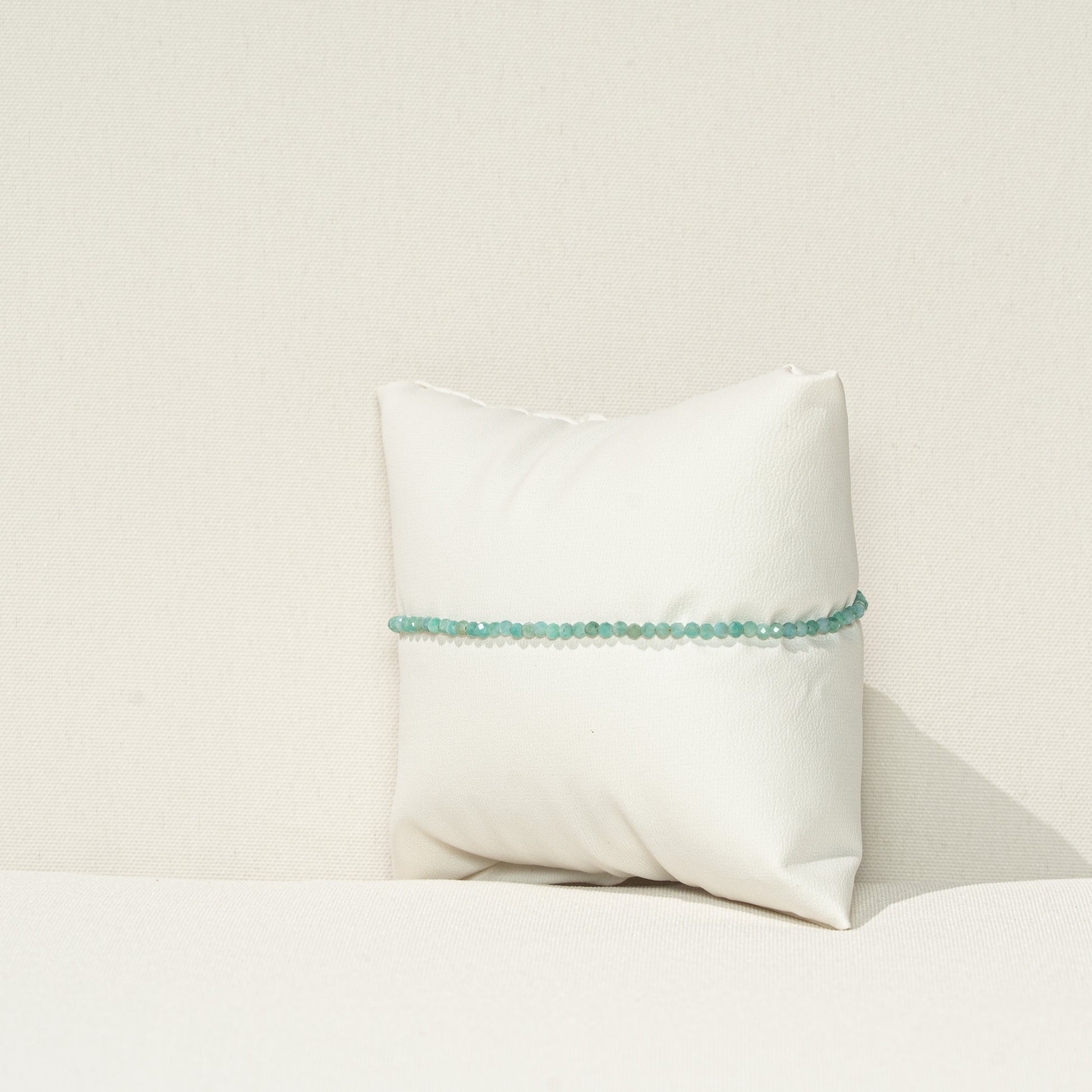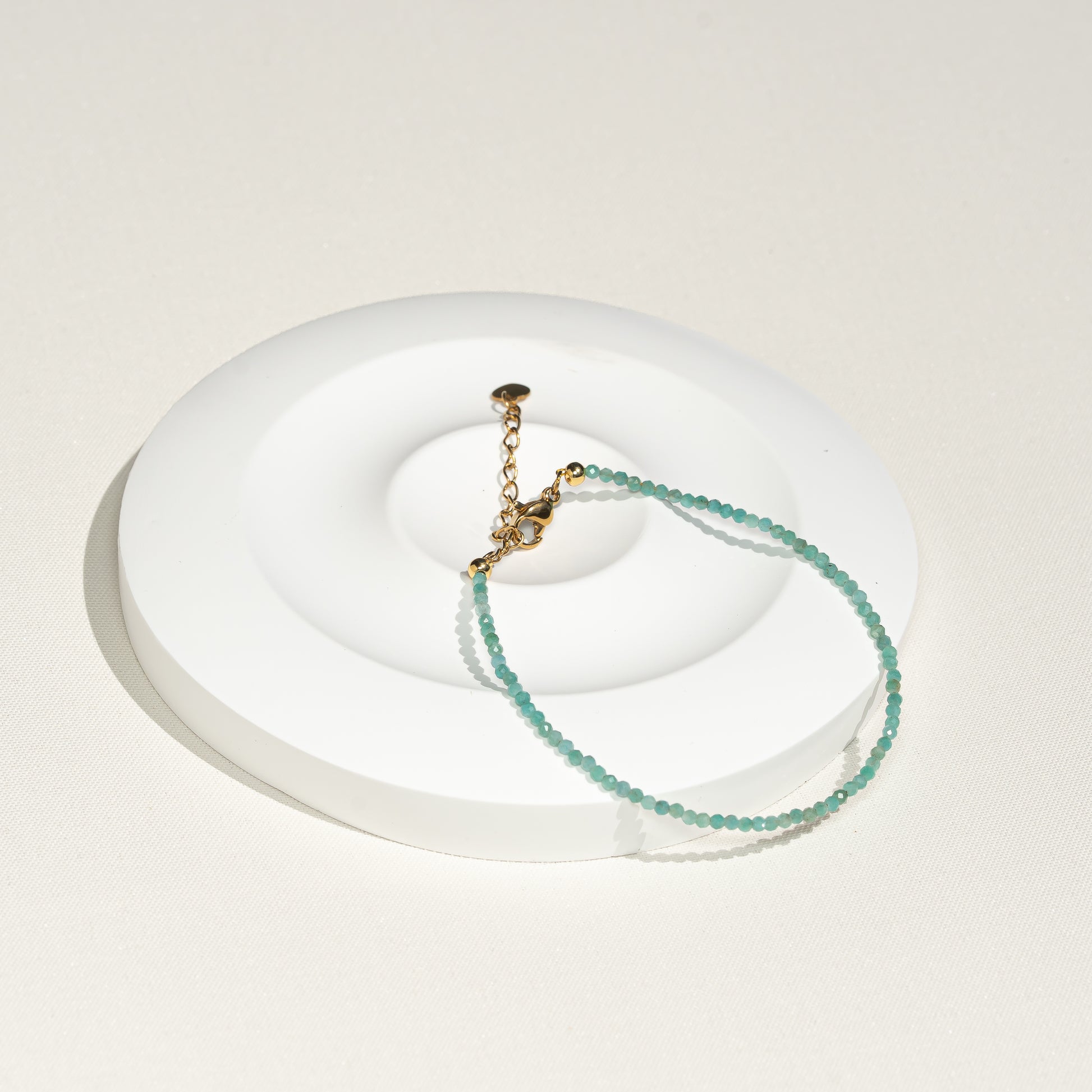 Armband aus facettierten kleinen Edelsteinen mit einem längenverstellbaren Edlelstahlverschluss in schöner Schmuckbox.