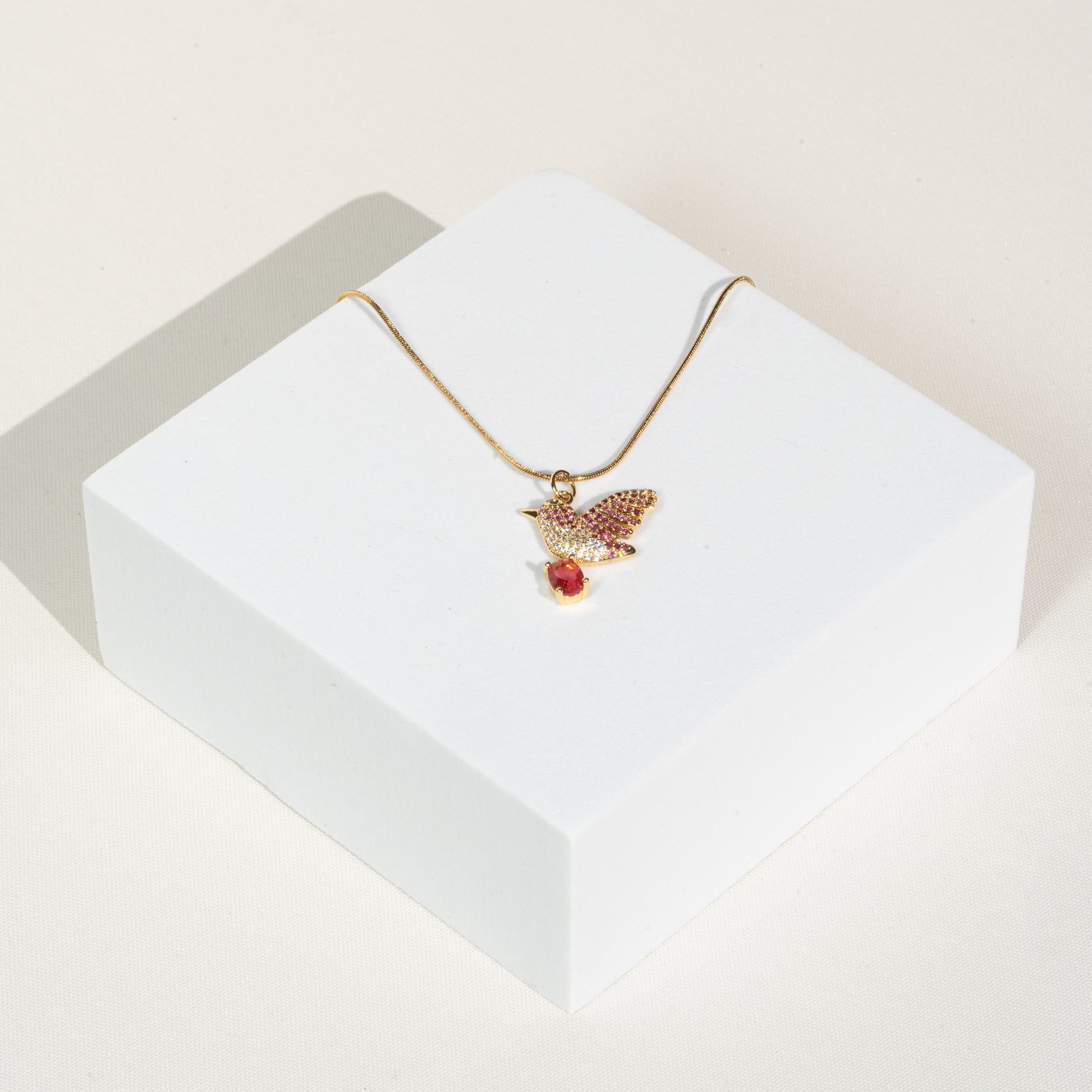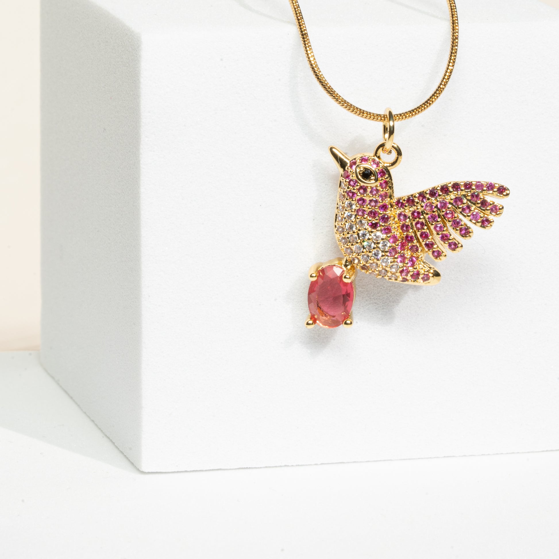 Kette 18K vergoldet mit Paradiesvogel mit pinken Zirkonia