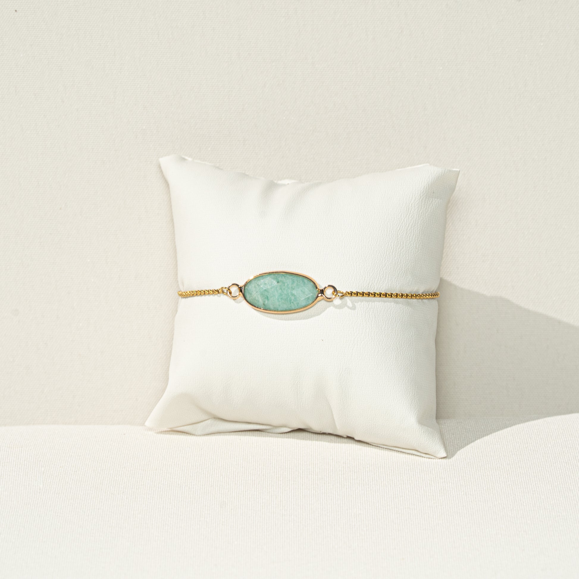 Edelsteinarmband aus hypoallergenem, wasserfestem Edelstahl mit facettiertem Amazonit eingefasst mit vergoldeten Kanten in schöner Schmuckbox.