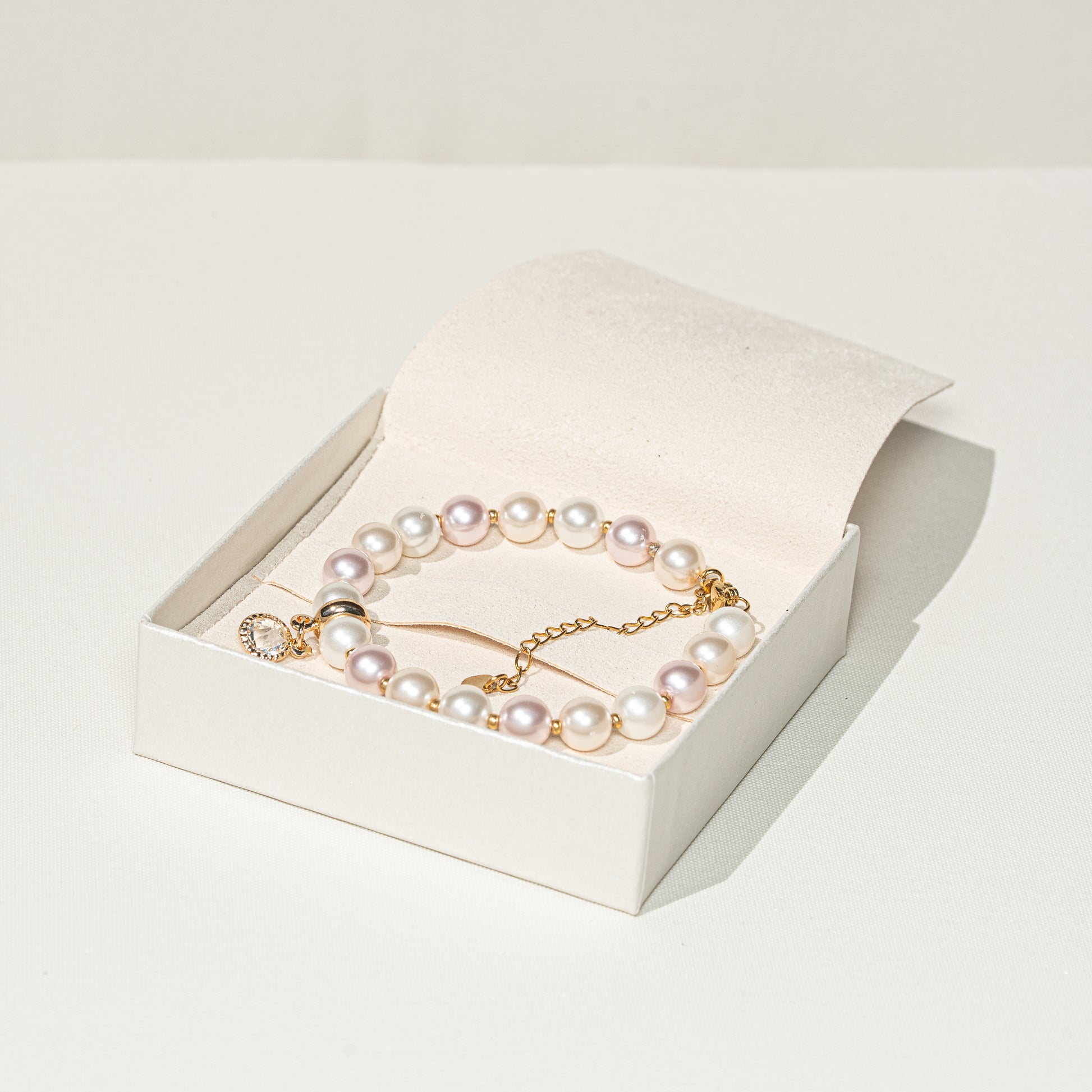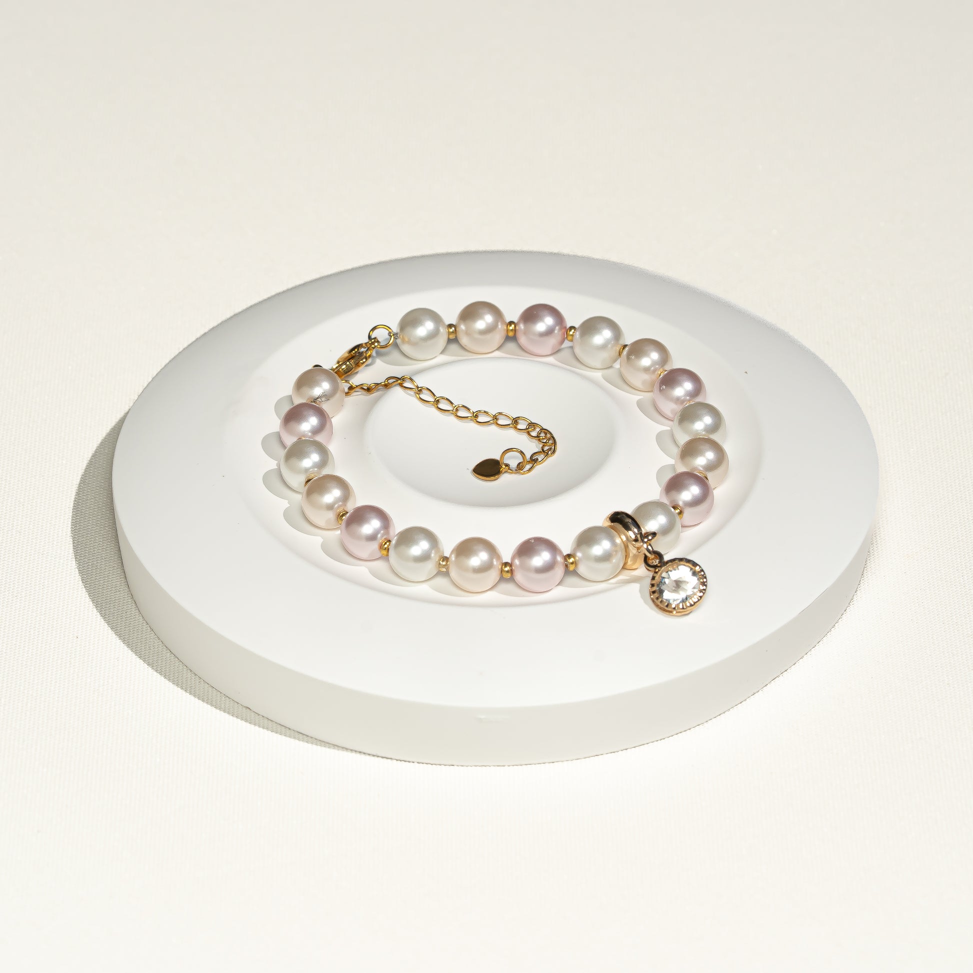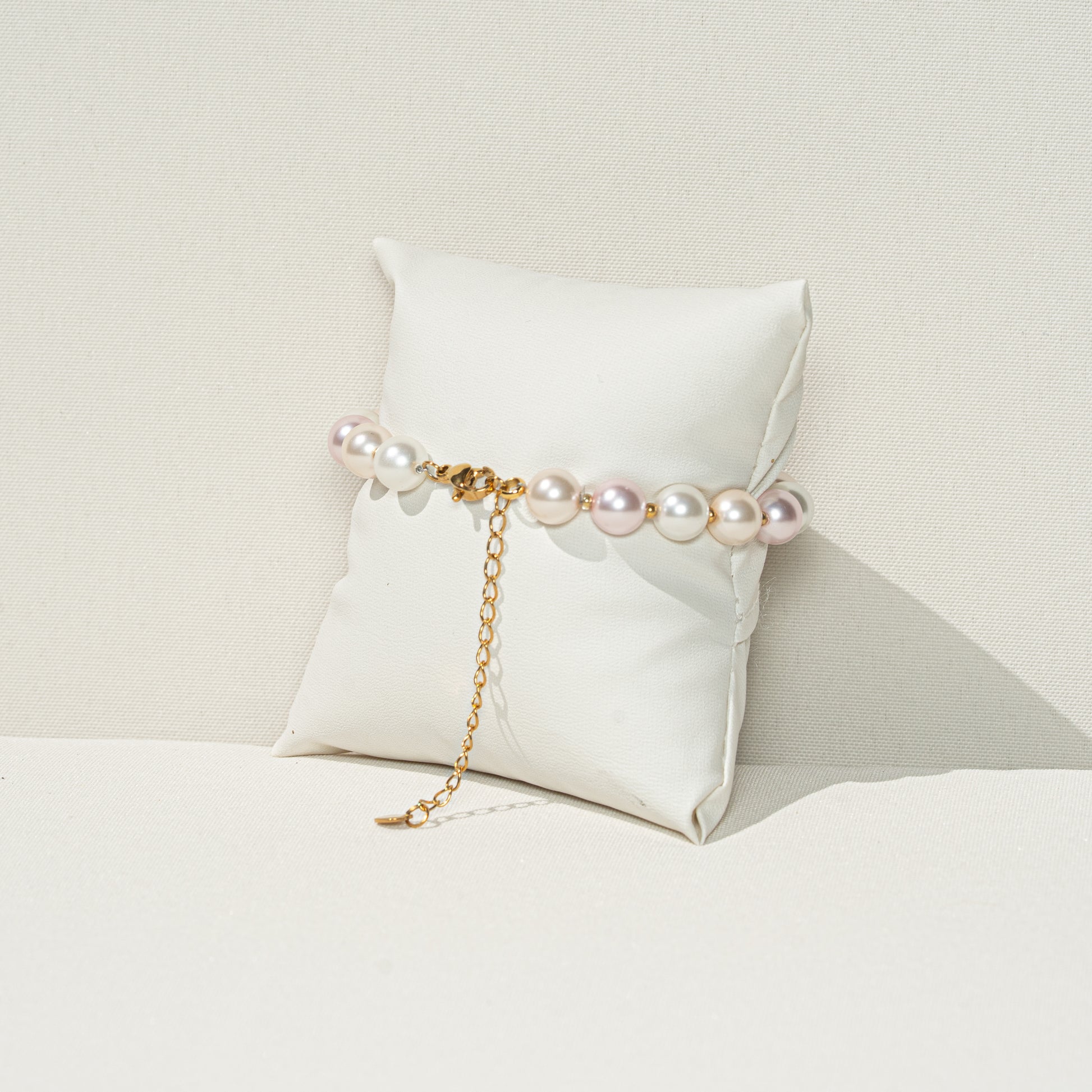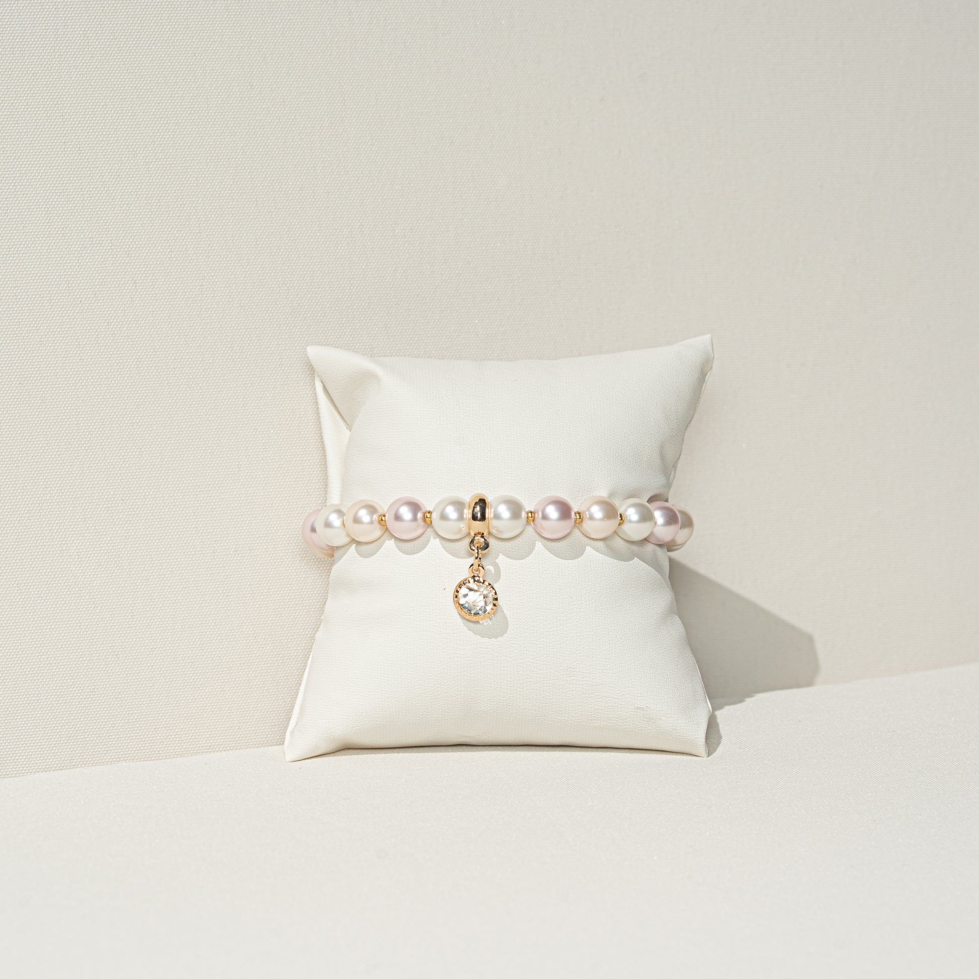Dieses wunderschöne Perlenarmband vereint zarte rosa Perlen mit einem funkelnden Strassanhänger, der dem Schmuckstück einen luxuriösen Glanz verleiht. Die sanften rosa Perlen strahlen feminine Eleganz aus, während der Strassanhänger einen glamourösen Akzent setzt, der das Armband zu einem besonderen Blickfang macht. Perfekt für romantische Anlässe oder als elegantes Highlight zu jeder Gelegenheit