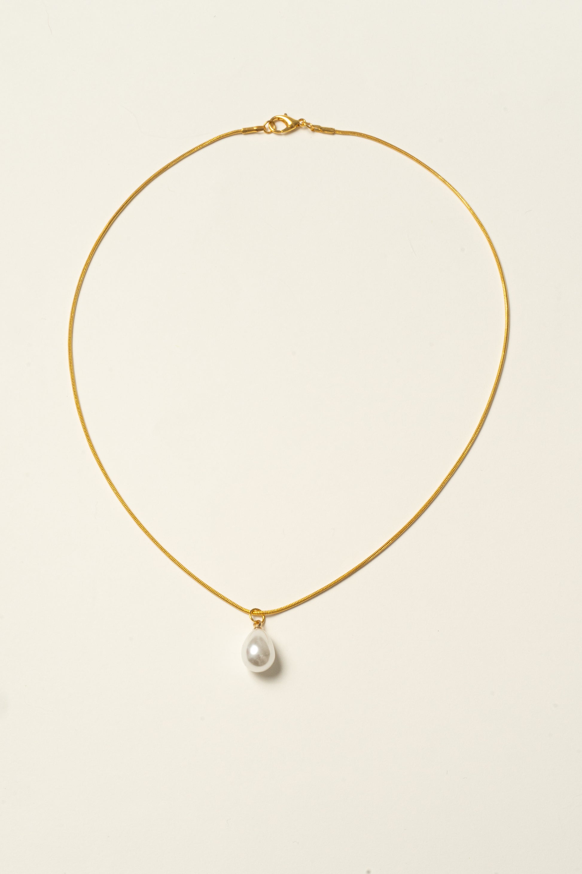 Diese elegante goldfarbene Schlangenkette mit einer edlen Perle als Anhänger ist ein wahrer Klassiker, der jedes Outfit aufwertet. Die glänzende goldene Kette hebt die Perle perfekt hervor, während der minimalistische Anhänger für einen stilvollen und dennoch dezenten Look sorgt. Ideal für formelle Anlässe, romantische Abende oder als zartes Accessoire für den Alltag – diese Kette ist ein vielseitiges Schmuckstück, das zu jeder Gelegenheit getragen werden kann.