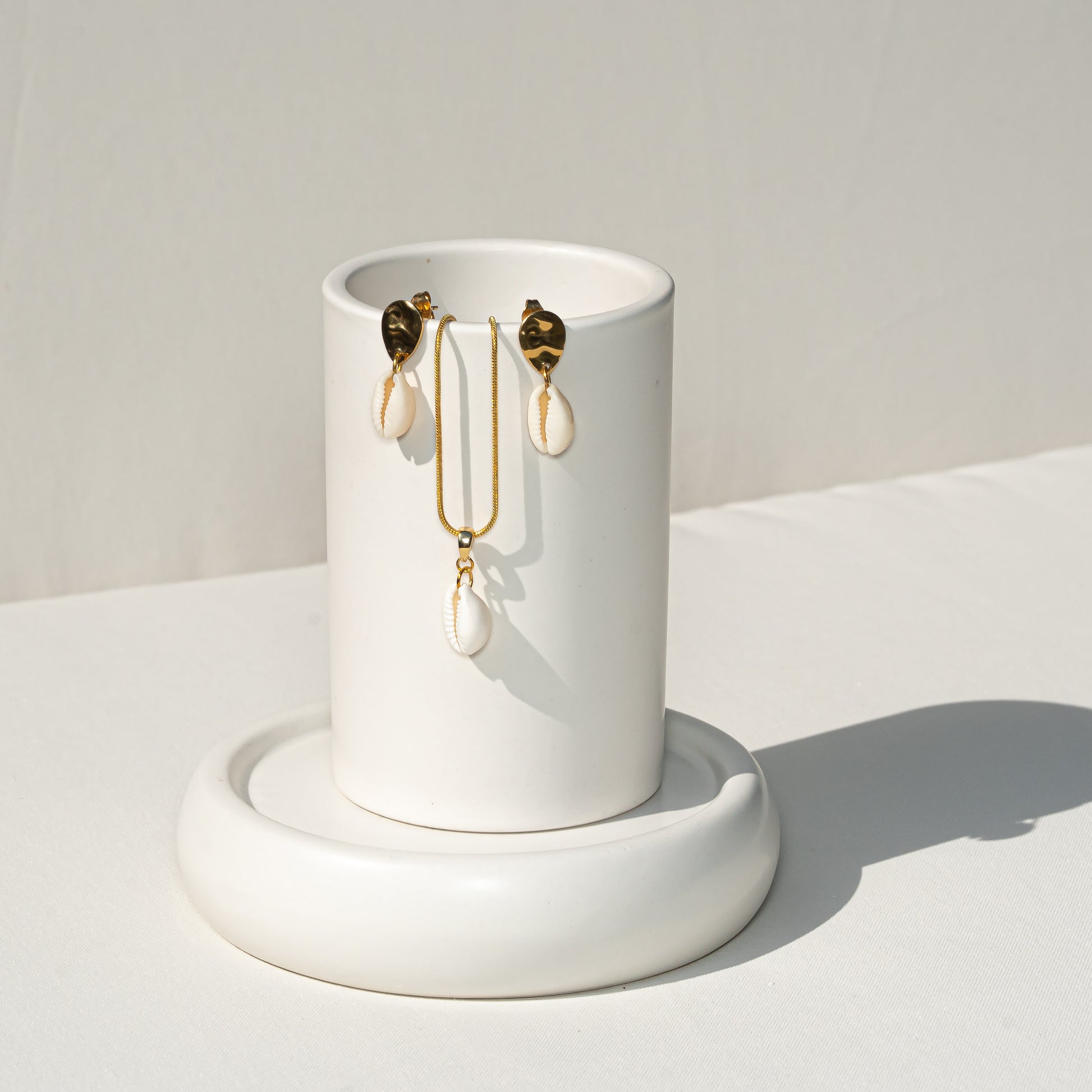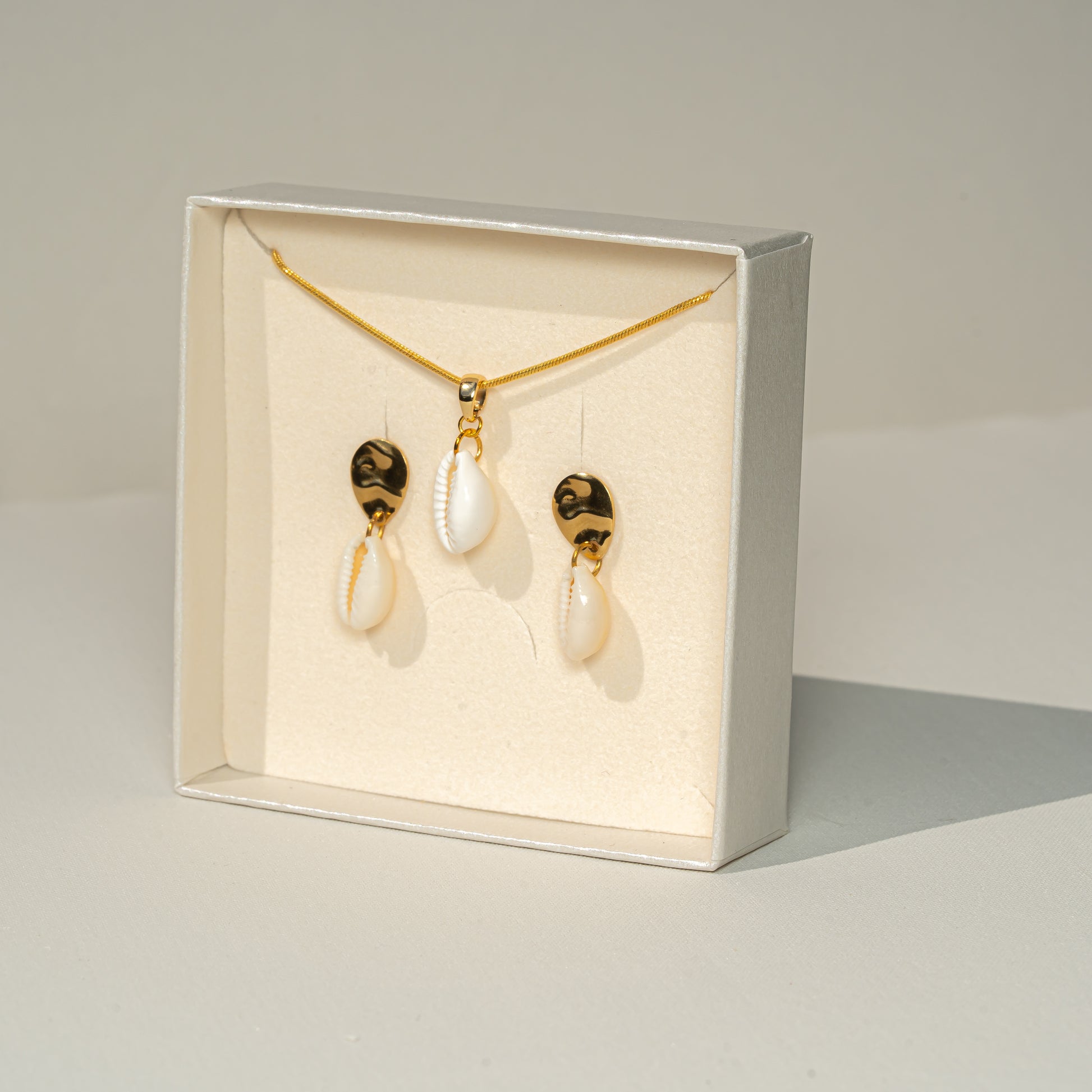 Set Kaurimuschel, Kette und Ohrringe, handmade